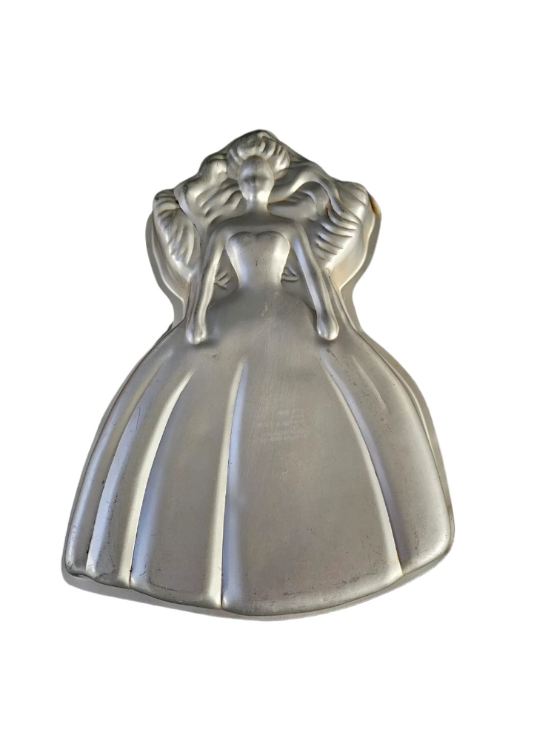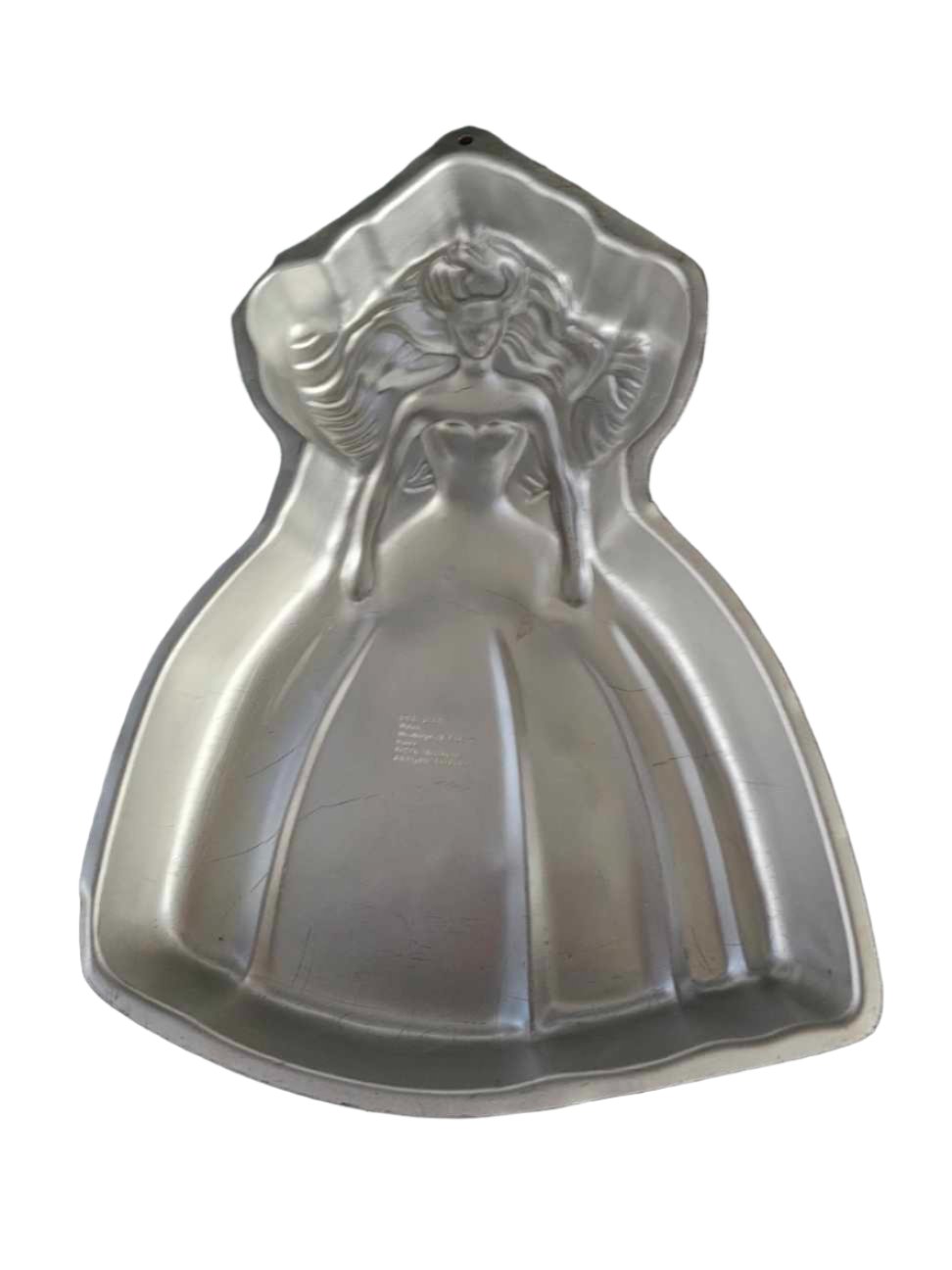This aluminum cake pan, is in good condition, showcases the ever so popular Barbie.