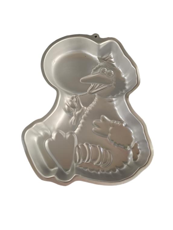 This aluminum cake pan is in excellent condition, showcases the loveable Big Bird from Sesame St holding a big balloon.