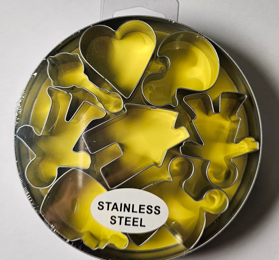 House, Family, Baby Cutters in Tin is a fondant and cookie dough cutter set that features a house, heart, rubber duckie, bottle, rattle, heart, mum, dad and pram. Its efficient design and quality materials make it ideal for creating evenly cut shapes of different sizes.